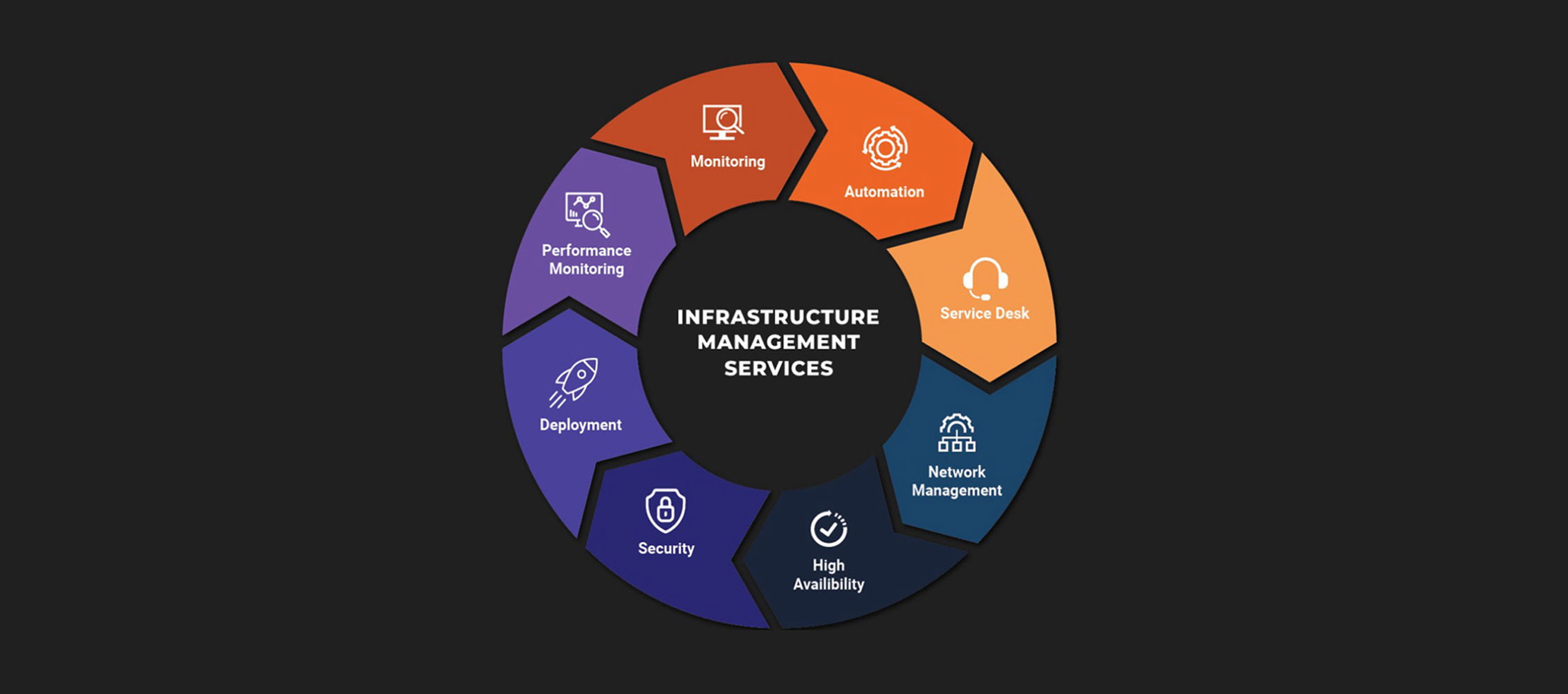Our comprehensive IT Infrastructure Management & Deployment portfolio covers: